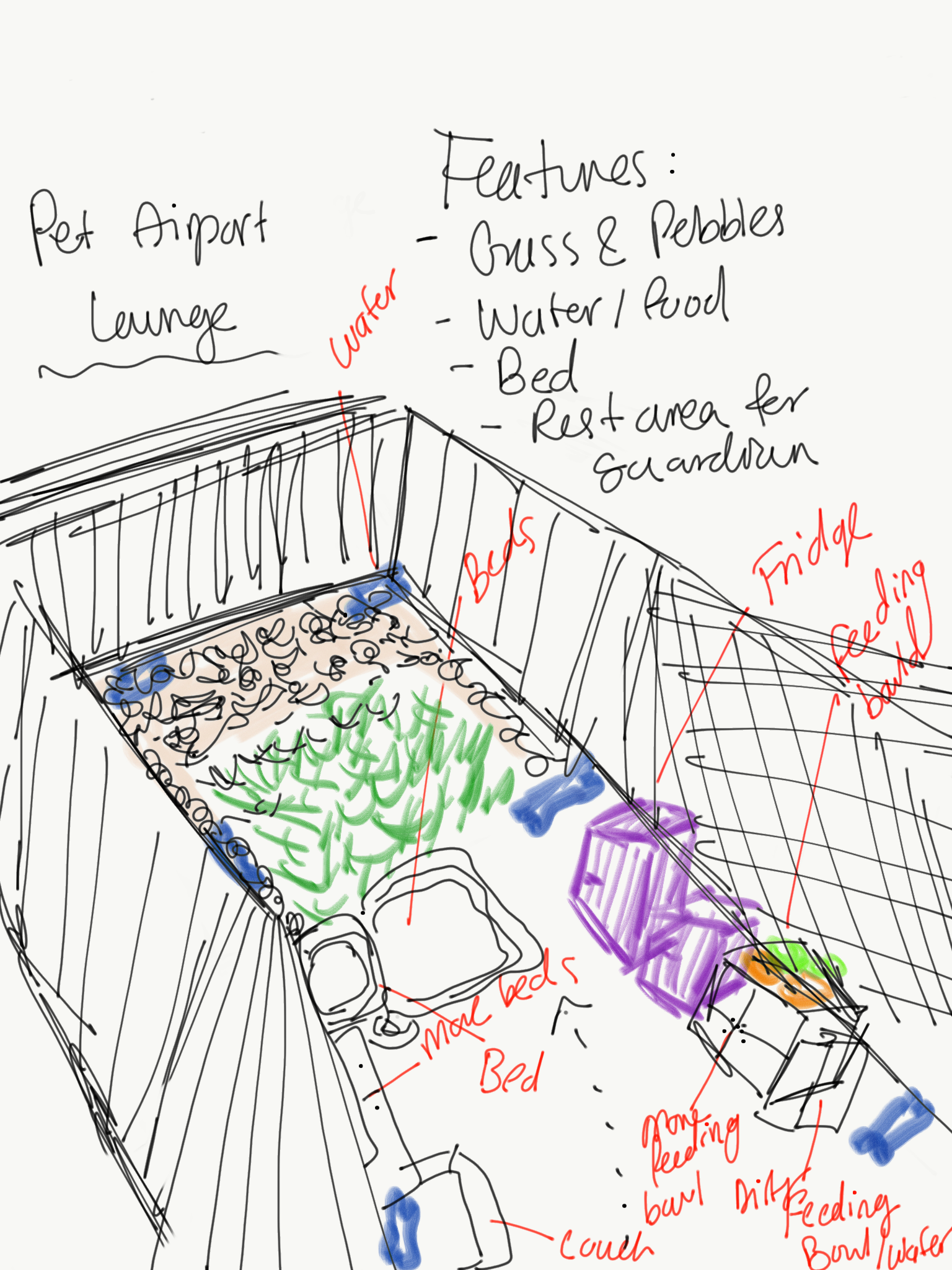 Many pet owners experience anxiety when traveling through airports due to limited pet-friendly facilities, long layovers, and overwhelming airport environments. Traditional waiting areas are not designed with animal well-being in mind, leading to increased stress, overstimulation, and discomfort for both pets and their humans.